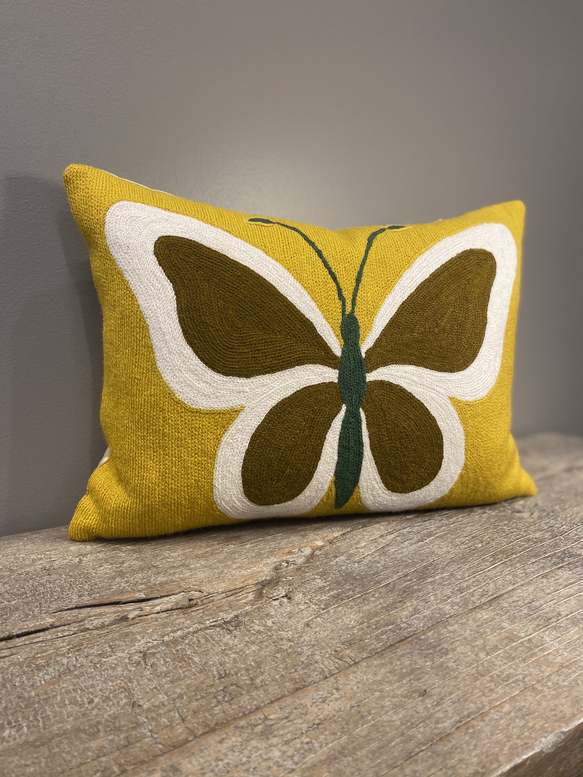 Coussin Butterfly brodé main au point de chaînette.