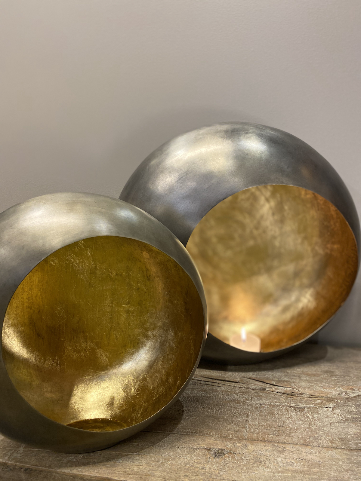 Photophore à poser diamètre 39 cm en zinc et intérieur en feuille d’or