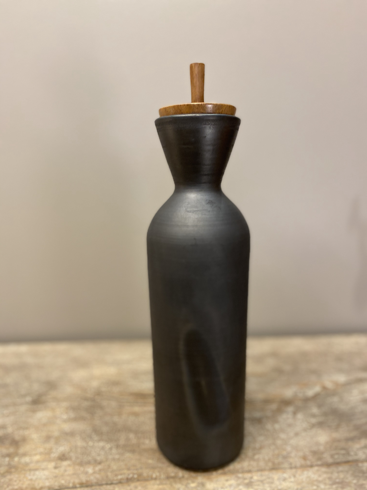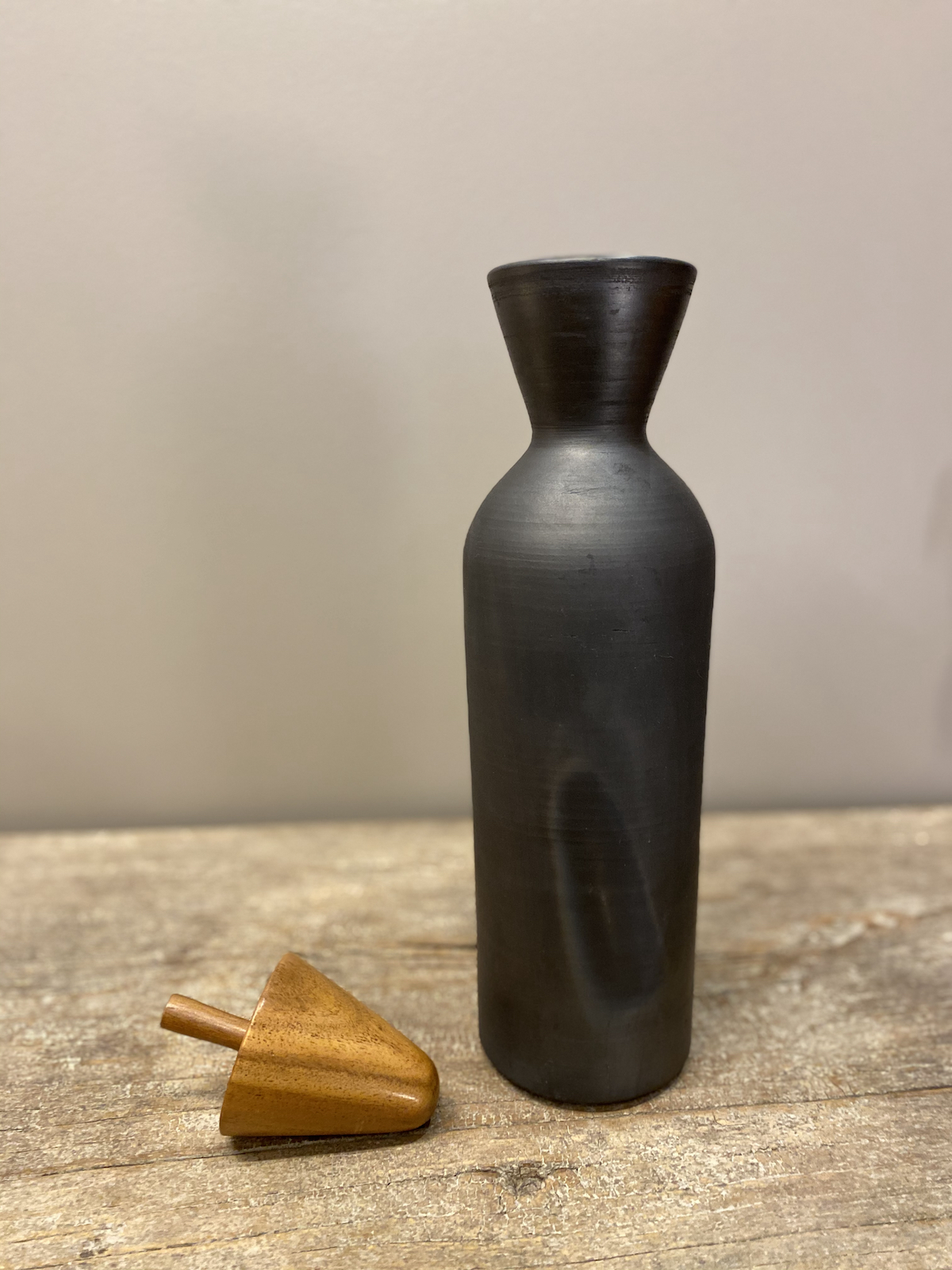 pichet indien en terra cotta noir cuit au feu et bouchon en bois de rose